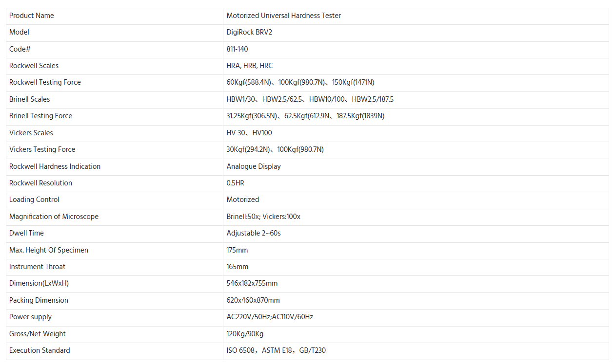 DigiRock BRV2 adalah alat uji kekerasan elektronik serbaguna dengan penggerak motor yang dirancang untuk melakukan pengujian kekerasan Rockwell, Brinell, dan Vickers dalam satu unit yang ringkas dan andal. Dirancang untuk akurasi dan kemudahan penggunaan, alat ini mengurangi kesalahan operator melalui proses pemuatan, penahanan (dwell), dan pembongkaran otomatis, serta menyediakan berbagai pilihan beban uji dan indenter untuk mengakomodasi berbagai jenis material.