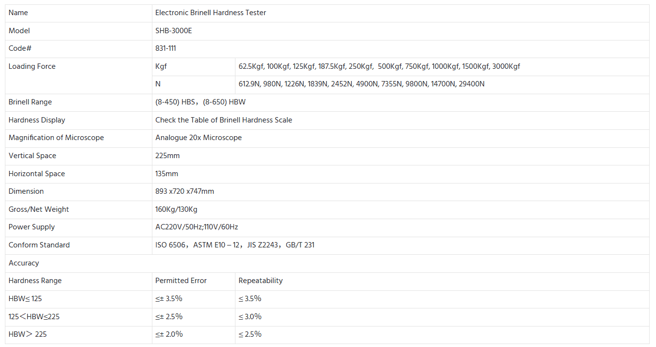 Hardness Tester Brinell Electronic SHB-3000 E