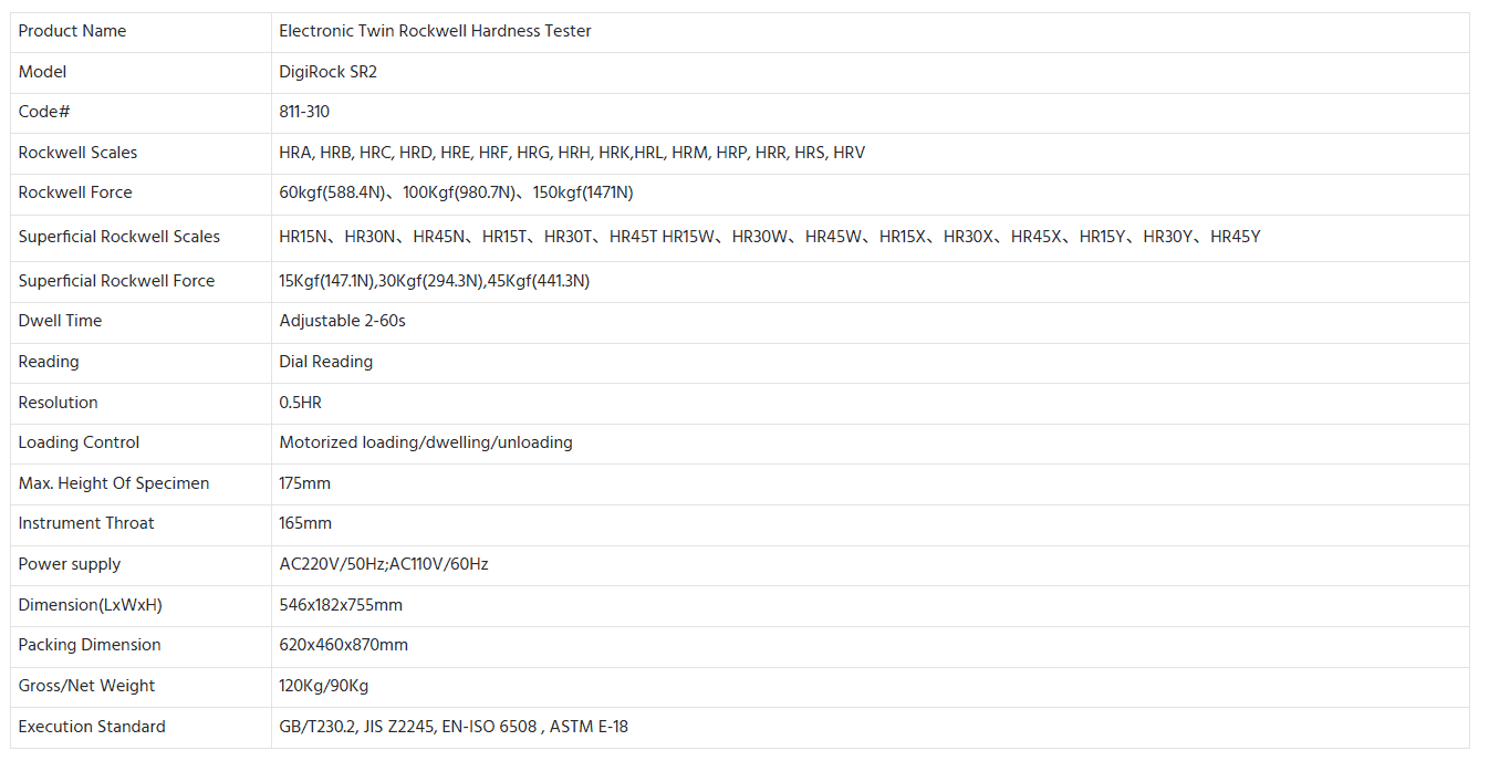 DigiRock SR2 adalah alat uji kekerasan elektronik canggih dengan mode ganda (twin-mode) yang mampu melakukan pengujian Rockwell yang standar dan Rockwell yang superfisial. Perangkat ini menggabungkan sistem pemuatan dan pembongkaran bermotor, pengukuran presisi tinggi, serta pergantian skala otomatis — menjadikannya ideal untuk pengujian material industri, pengendalian kualitas produksi, dan laboratorium yang memerlukan pengujian kekerasan fleksibel pada berbagai jenis material.