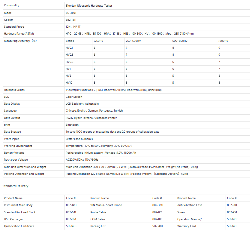 Sinowon SU-340T adalah alat uji kekerasan ultrasonik portabel yang dirancang khusus untuk mengukur kekerasan pada dinding bagian dalam tabung, bejana tekan, pipa, dan area sempit atau cekung lainnya. Dilengkapi dengan probe UCI (Ultrasonic Contact Impedance) berukuran pendek, SU-340T memungkinkan pengujian yang akurat dan non-destruktif bahkan pada ruang sempit dan sulit dijangkau.
