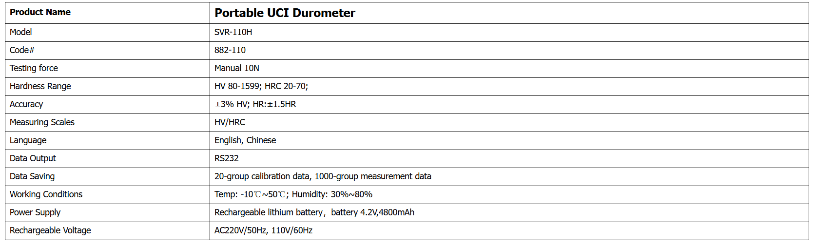 Sinowon SVR-110H adalah durometer ultrasonik portabel yang menggunakan teknologi UCI (Ultrasonic Contact Impedance) untuk memberikan pengukuran kekerasan yang cepat, sangat akurat, dan tidak merusak. Dirancang untuk pengujian di lapangan, alat ini ideal untuk memeriksa komponen jadi seperti cetakan, poros, roda gigi, sekrup, rel, dan banyak lagi — terutama pada area yang sulit dijangkau oleh tester meja konvensional.
